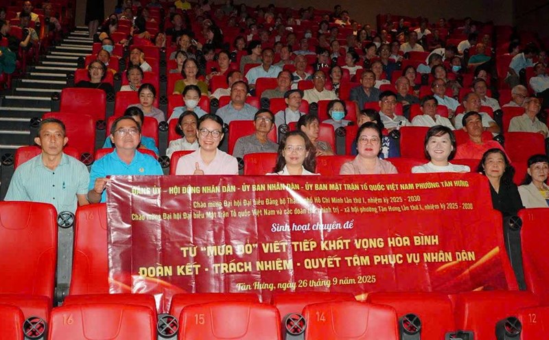 HCMC - The Vietnam Fatherland Front Committee of Tan Hung Ward organized a screening of the historical film Red Rain for more than 520 cadres and party members of the unit to watch.