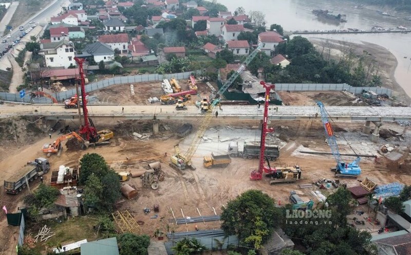 Phu Tho - The sound of machinery resounds at the construction site before the start of construction of the new Phong Chau bridge (December 21).