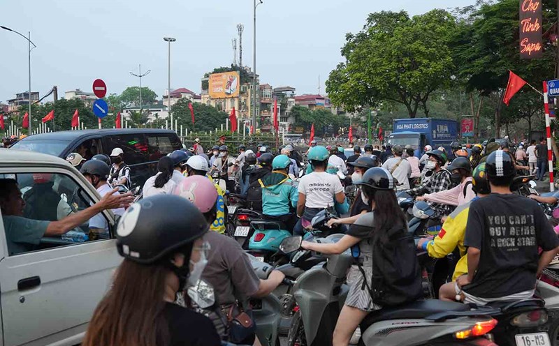 Carelessly going in the wrong direction, vehicles jostle on the prohibited road in Hanoi
