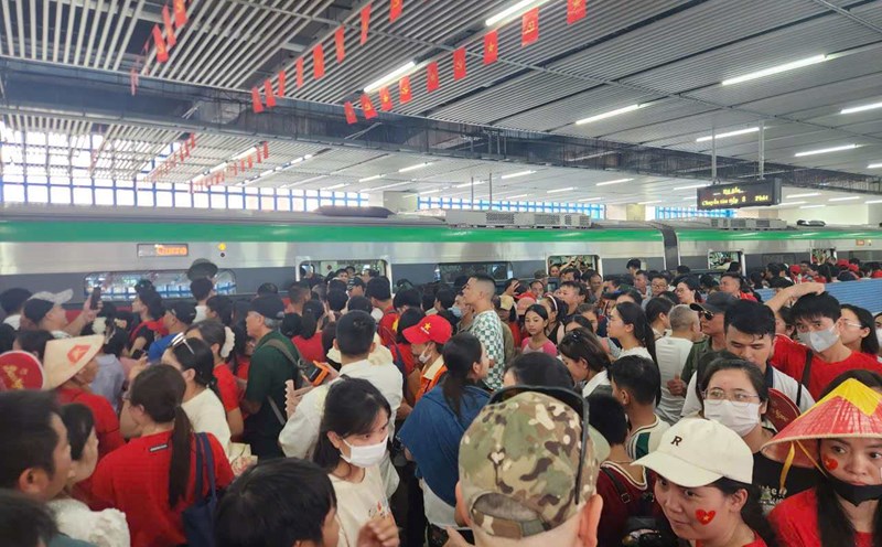 Cat Linh Station is crowded with people returning from the parade on September 2