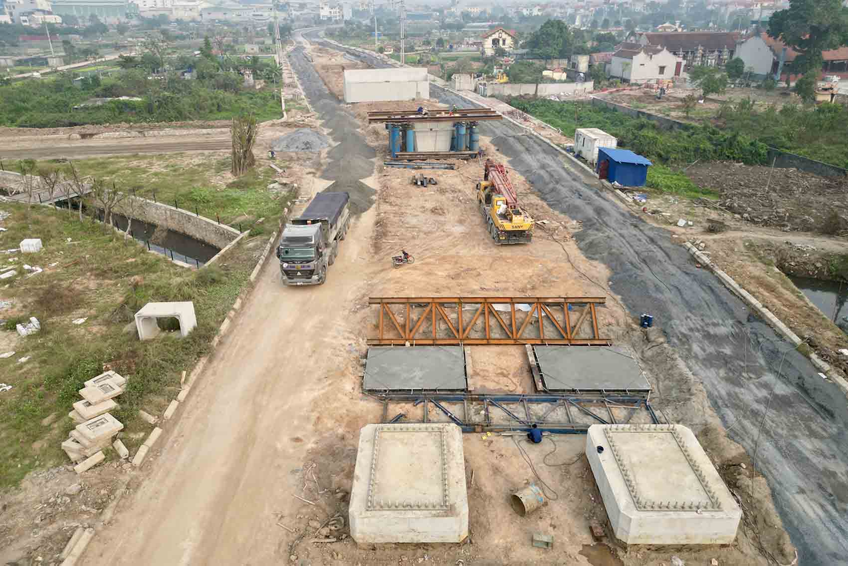 Hanoi - Some items of the National Highway 1A overpass and North-South railway project (Thuong Tin district), with a capital of nearly 300 billion VND, are gradually taking shape after more than half a year of construction.