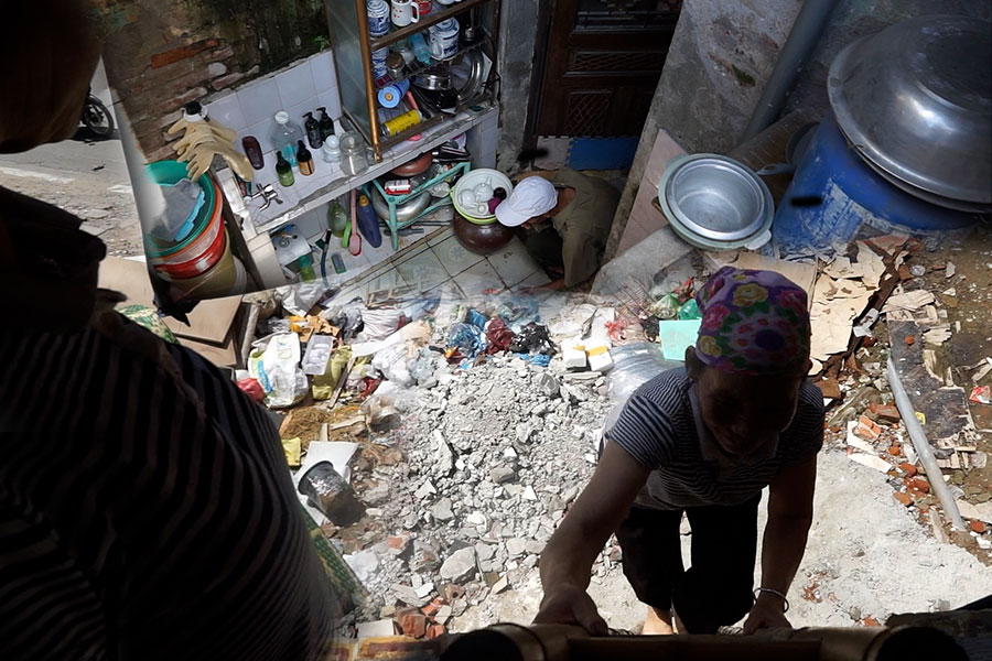 Nằm trong diện giải toả phục vụ thi công Dự án đầu tư xây dựng hoàn thiện nút giao thông Chùa Bộc - Thái Hà, hiện nhiều căn nhà tại đây được tháo dỡ một cách dang dở. Để có thể vào bên trong nhà, có hộ dân chỉ có thể đánh liều bằng cách bắc thang trèo lên tầng 2 mỗi ngày. Trong khi đó, bên dưới giáp mặt đường Chùa Bộc là đất đá ngổn ngang, rác thải và phế liệu được tập kết gây ô nhiễm và bị đổ trộm từ ngày này qua ngày khác.