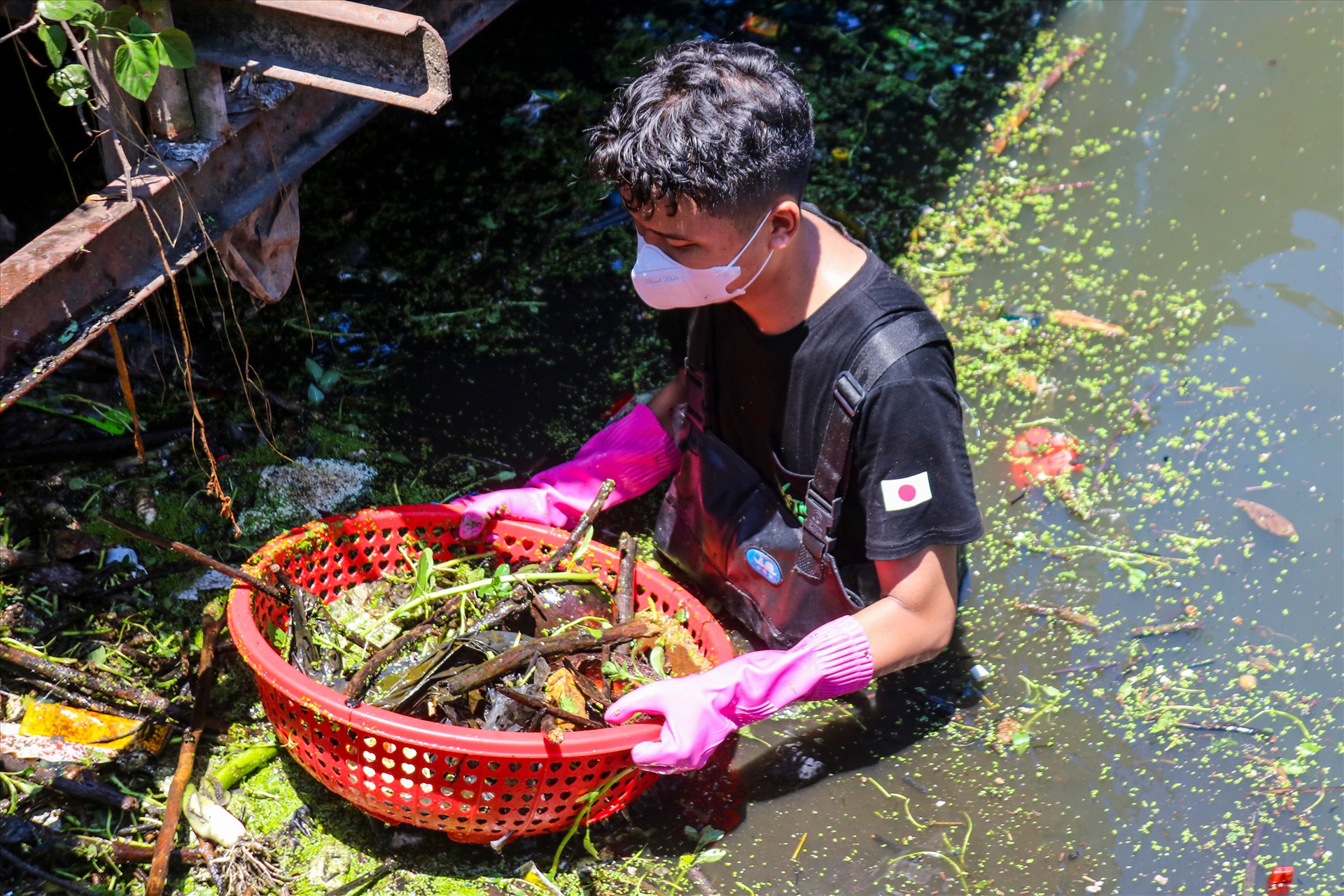 Ngâm mình dọn rác thải ô nhiễm giữa trưa nắng 40 độ C ở Hà Nội