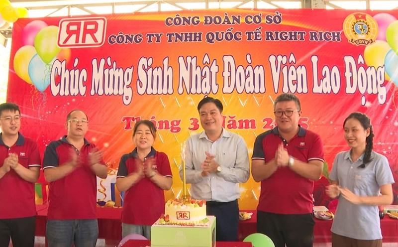 Binh Thuan - Hundreds of workers born in the same month were organized a collective birthday party by the company's trade union in the industrial park.