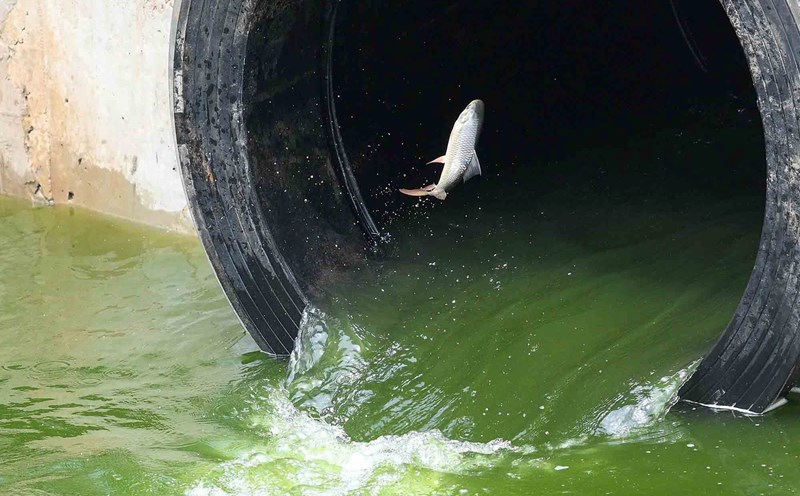 To Lich River turns green, fish swimming after replenishing water in West Lake