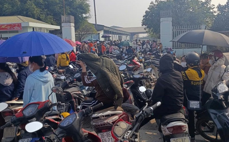 Thanh Hoa - Not satisfied with the company's implementation of bonus and social insurance policies, hundreds of workers continued to collectively stop working and gathered in front of the company gate.