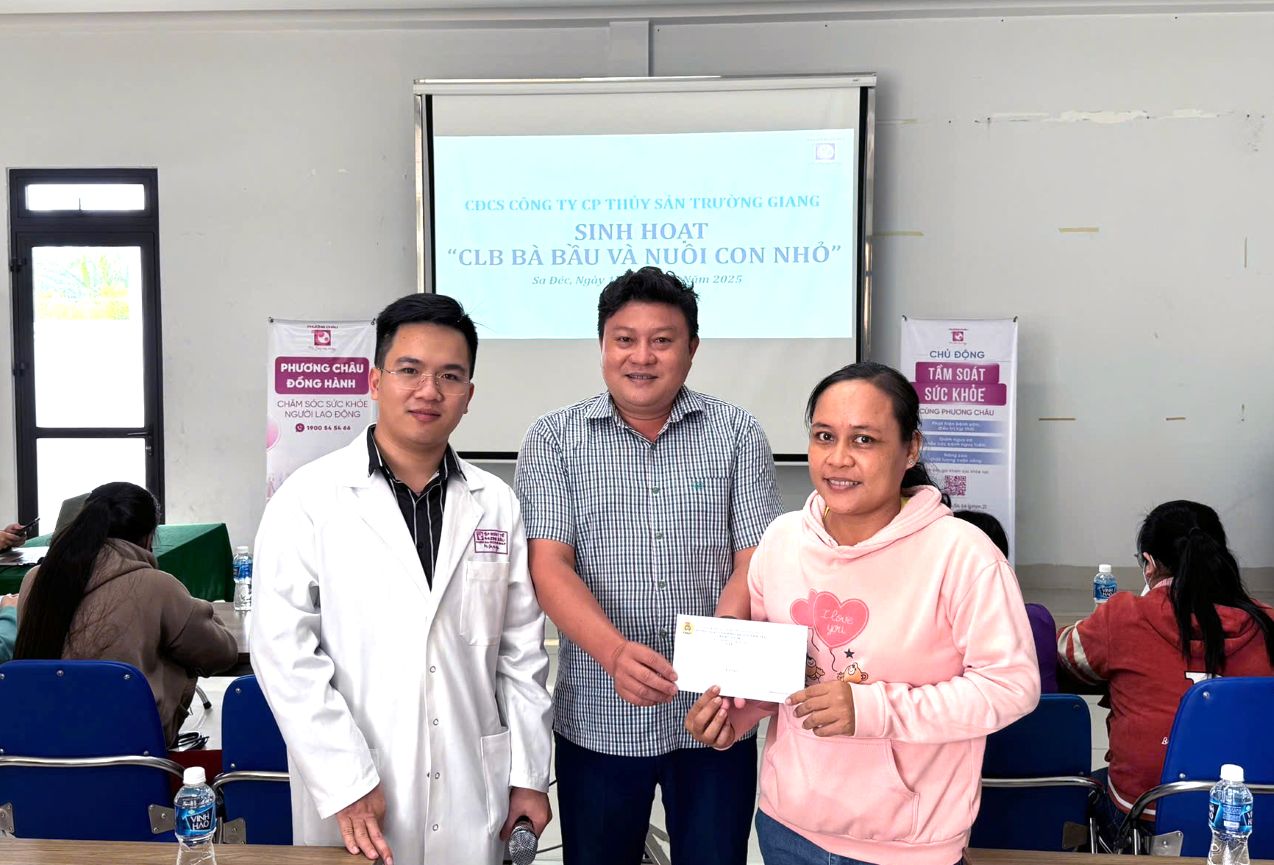 Dong Thap - Participating in the thematic activity, female pregnant and raising workers also have the opportunity to receive gifts from the Trade Union of industrial parks and economic zones of the province.