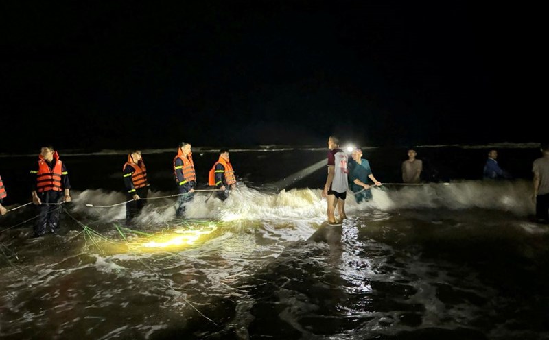Ha Tinh - A father and son were swimming in Tien Dien commune (old Xuan Thanh commune) and were unfortunately swept away by waves for many nautical miles, fortunately they were rescued by a cargo ship in time.