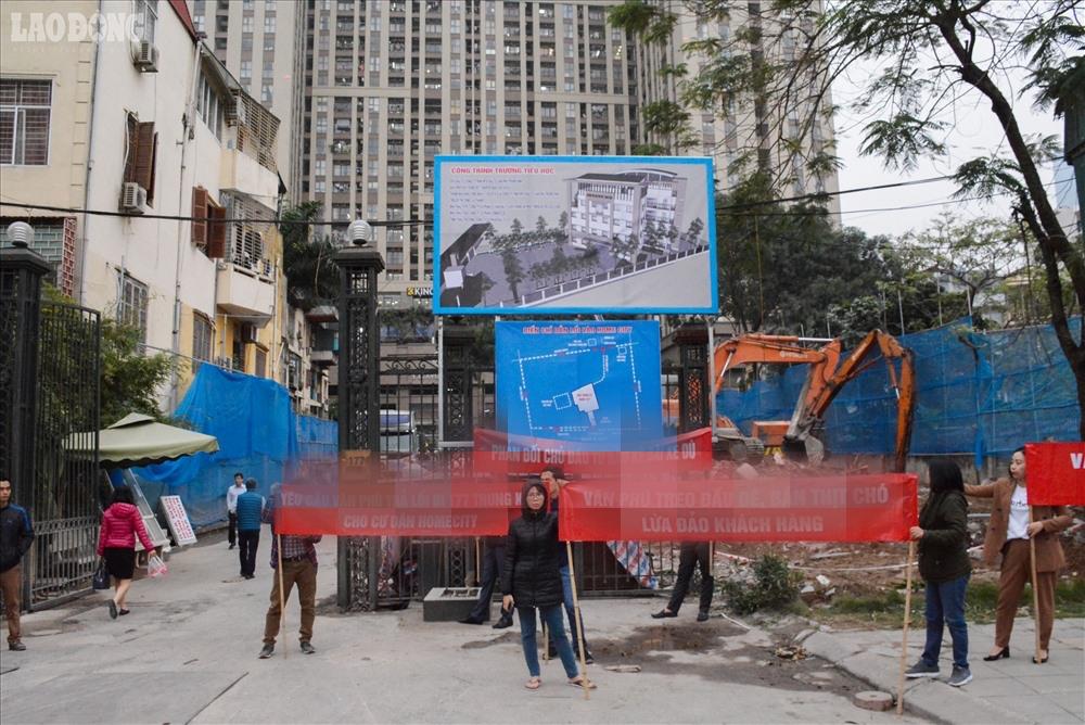 On February 21, hundreds of residents of Home City apartment building, 177 Trung Kinh (Cau Giay, Hanoi) stretched banners protesting the project investor, blocking the residents' access.