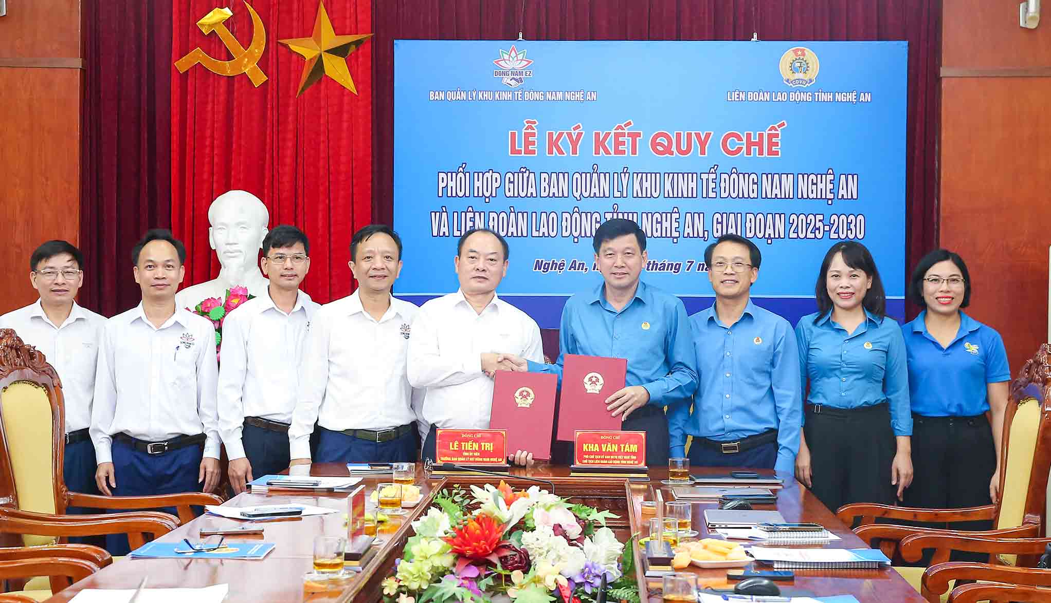 Nghe An - On the afternoon of July 28, the Provincial Labor Federation and the Southeast Economic Zone Management Board signed coordination regulations for the period 2025-2030.
