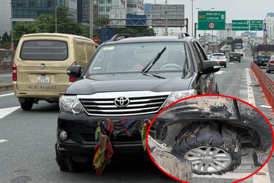 Hanoi - A car had 2 tires exploded on the right and was traveling in the wrong direction, the driver showed unusual signs.
