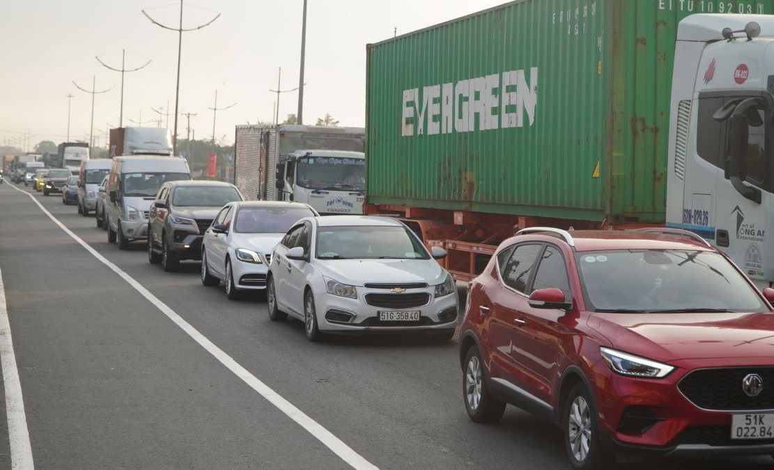 TPHCM - Trong ngày đầu của kỳ nghỉ lễ Tết Dương lịch 2024, tại 2 đường dẫn vào cao tốc Trung Lương - TPHCM và TPHCM - Long Thành - Dầu Giây đã xảy ra tình trạng ùn ứ, kẹt xe kéo dài.