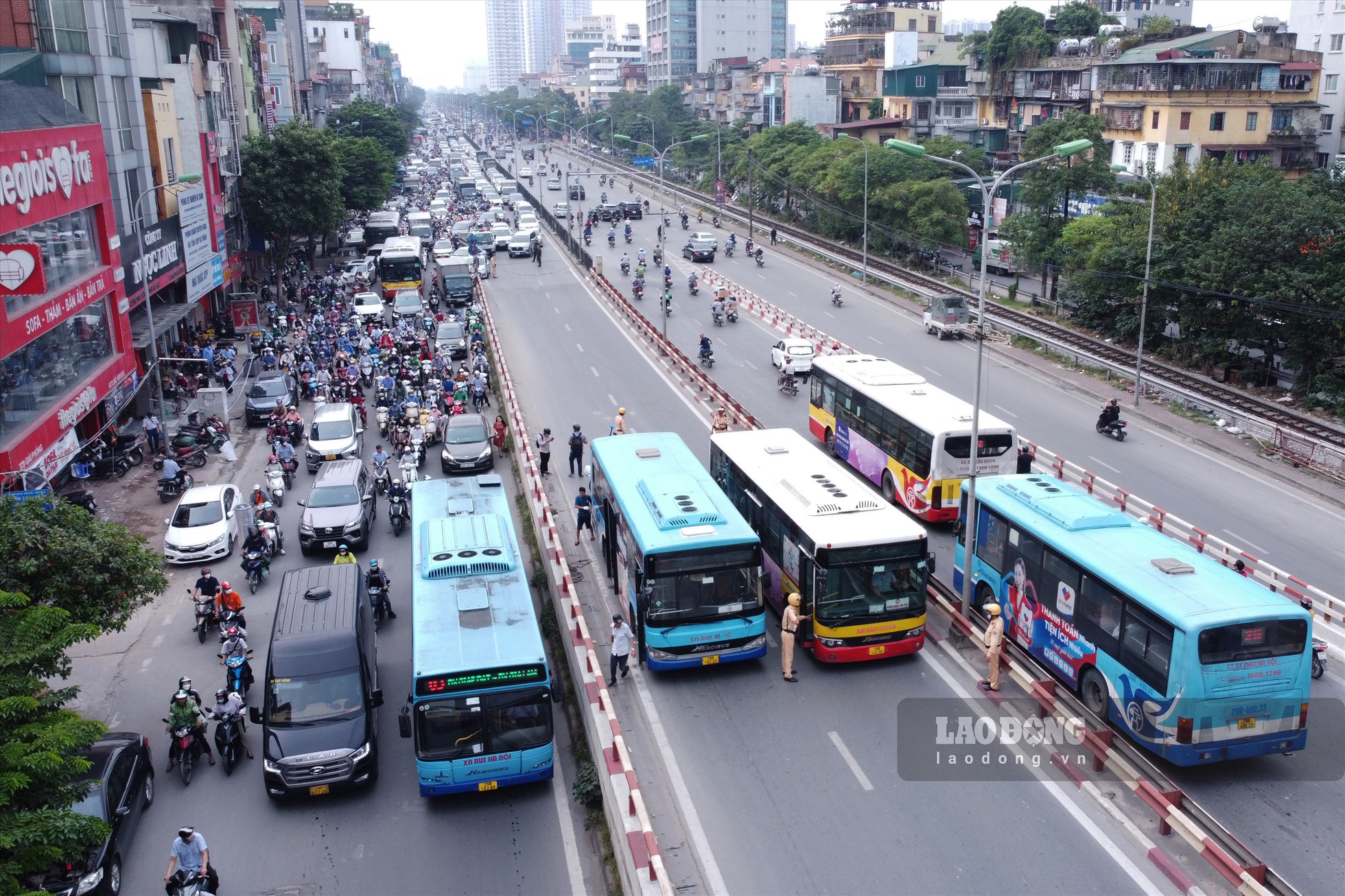 Hà Nội - Sáng nay 25.10, một chiếc xe buýt khi đến cầu Ngã Tư Vọng đã bị hỏng máy, dừng giữa cầu. Do đúng vào khung giờ cao điểm, lượng phương tiện đông nên tuyến đường Giải Phóng bị ùn tắc kéo dài hàng km. Rất may lực lượng CSGT có mặt kịp thời để phân luồng, giải quyết sự cố.