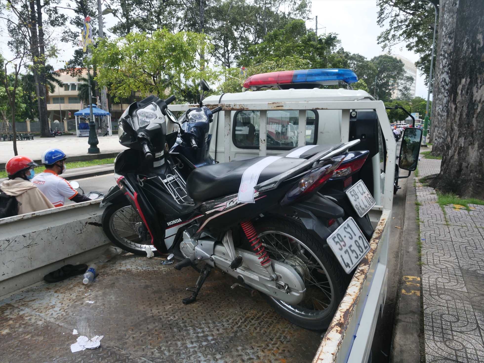 TPHCM - Dù chưa đủ tuổi lái xe phân khối lớn, nhưng N.M.K (16 tuổi) vẫn sử dụng xe máy có dung tích xi-lanh từ 50 phân khối trở lên, kết quả em bị lực lượng chức năng tạm giữ phương tiện.