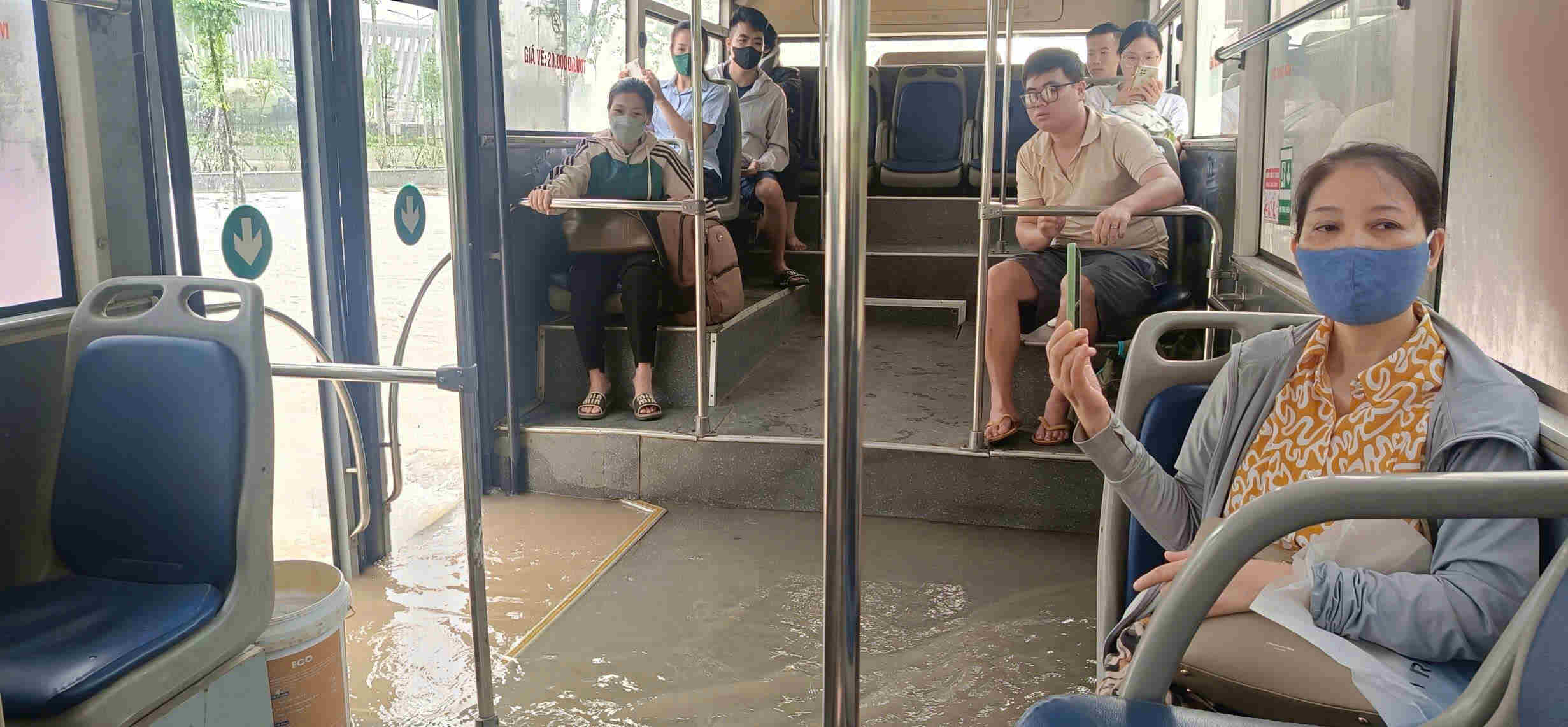 To be present at the workplace on the morning of October 1, many people had to wake up early, overcome deep flooded areas to try to be present on time.