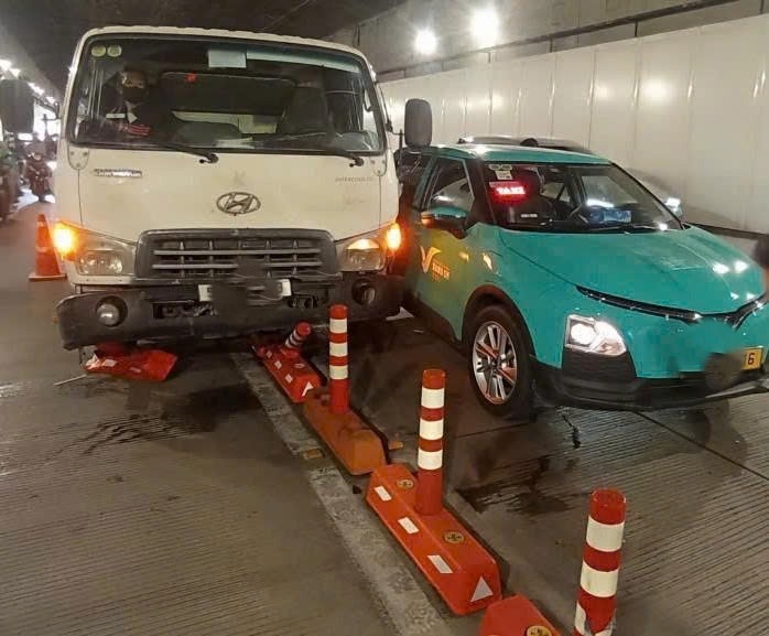 Multiple collisions in Thu Thiem tunnel, traffic congestion