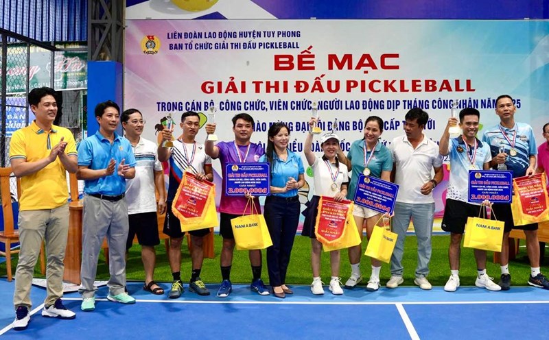 Binh Thuan - For the first time, the Pickleball tournament organized by the union attracted 62 athletes from the unions of agencies and units in Tuy Phong district.