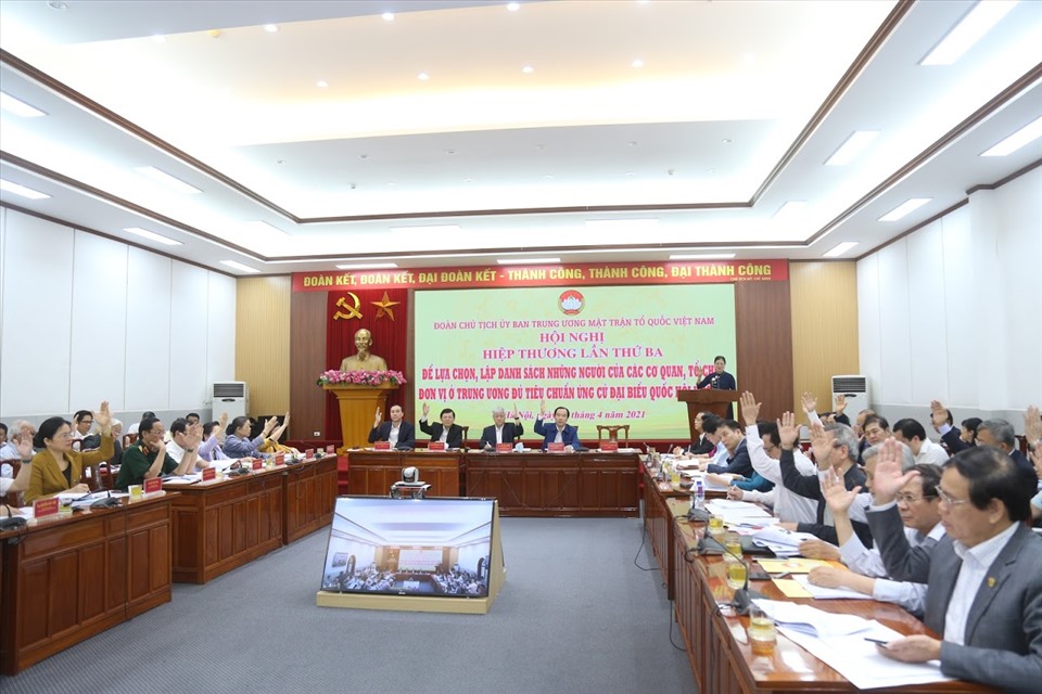 Đoàn Chủ tịch Ủy ban Trung ương Mặt trận Tổ quốc Việt Nam thống nhất giữ nguyên danh sách 205 người ở Trung ương ứng cử đại biểu Quốc hội đã trình từ Hội nghị hiệp thương lần thứ 2. Trong đó, có 17 Ủy viên Bộ Chính trị tham gia ứng cử đại biểu Quốc hội khóa XV.