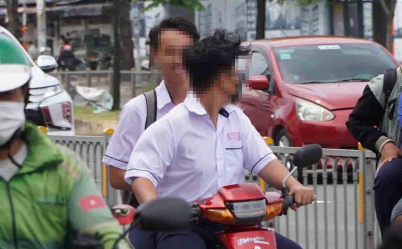 Many students in Ho Chi Minh City drive without helmets, carrying more people than the prescribed number