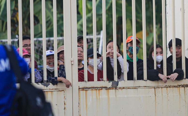 Many fans were present outside Viet Tri Stadium (Phu Tho), clinging to the gate fence to watch the training session of the Vietnamese team preparing for the match against Singapore in the second leg of the ASEAN Cup 2024 semi-finals.