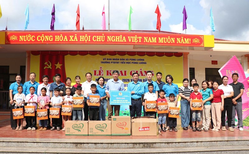 Lao Cai - On September 6, the Provincial Federation of Labor coordinated to organize a program to give gifts to support people and children in difficult circumstances in Mu Cang Chai and Pung Luong communes.