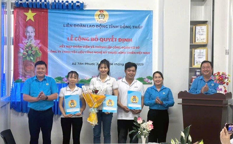 Dong Thap - Establishing a grassroots trade union and admitting union members at enterprises in Long Giang Industrial Park.