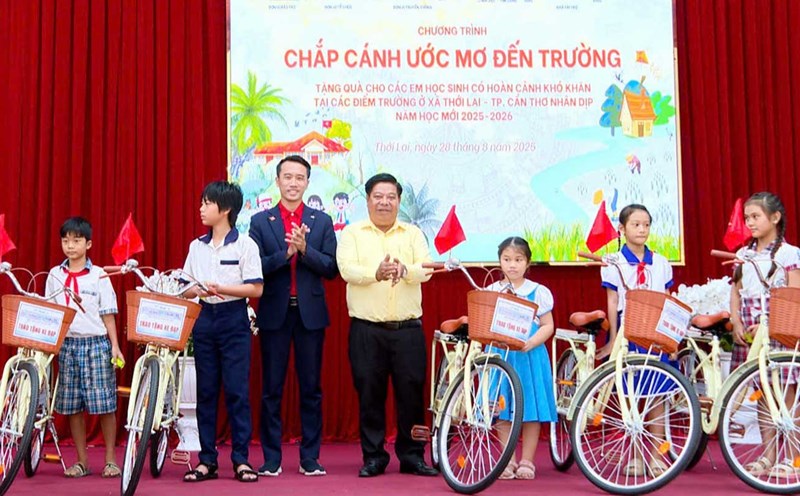 Can Tho - On the occasion of the new school year, more than 100 gifts were given to students in difficult circumstances in Thoi Lai commune.