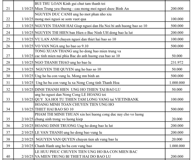 "A piece of food when hungry is worth a package when full", with the spirit of mutual love that has always been a beautiful image of the Vietnamese people, the Golden Heart Social Charity Fund calls on domestic and foreign philanthropists to join hands to share with people affected by floods to have food, clothing, shelter, students have books to go to school...