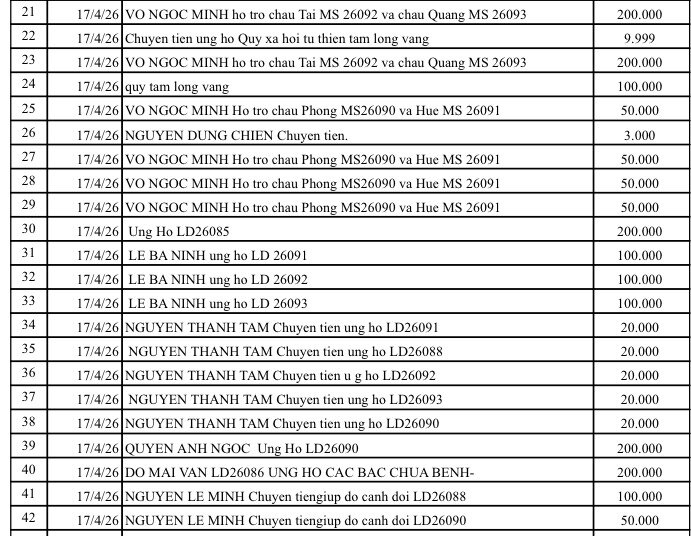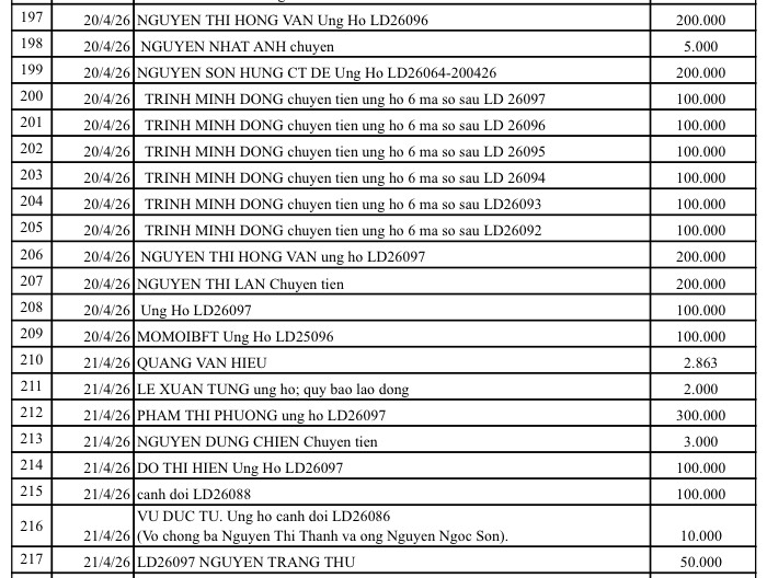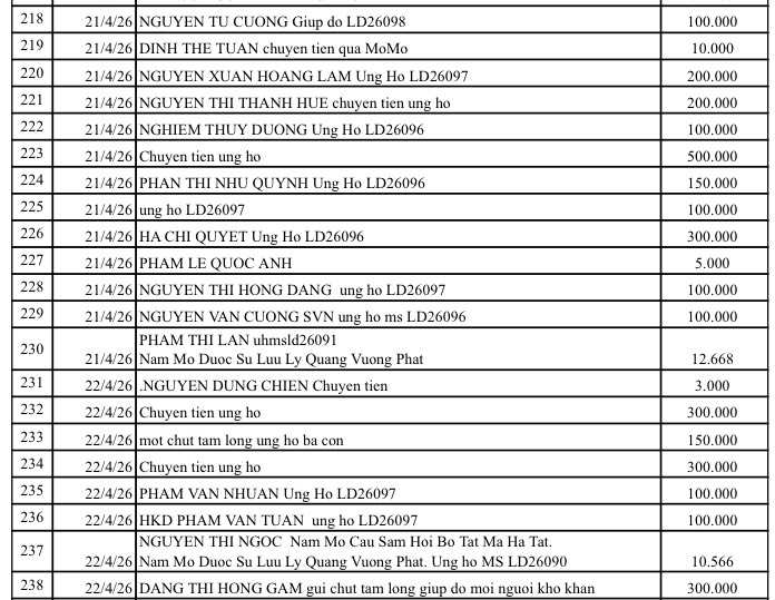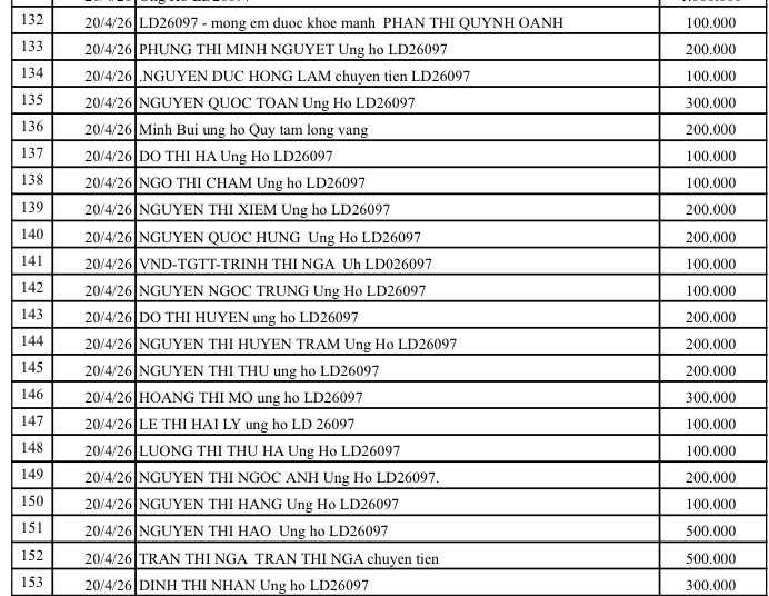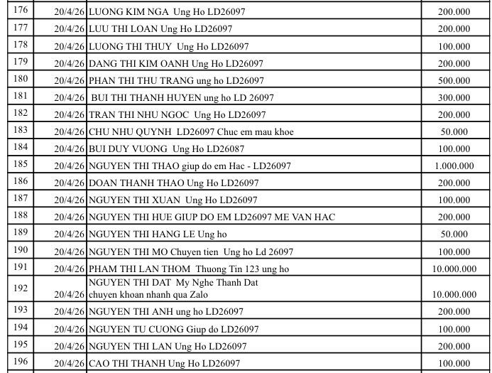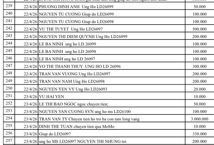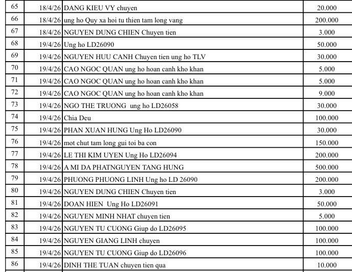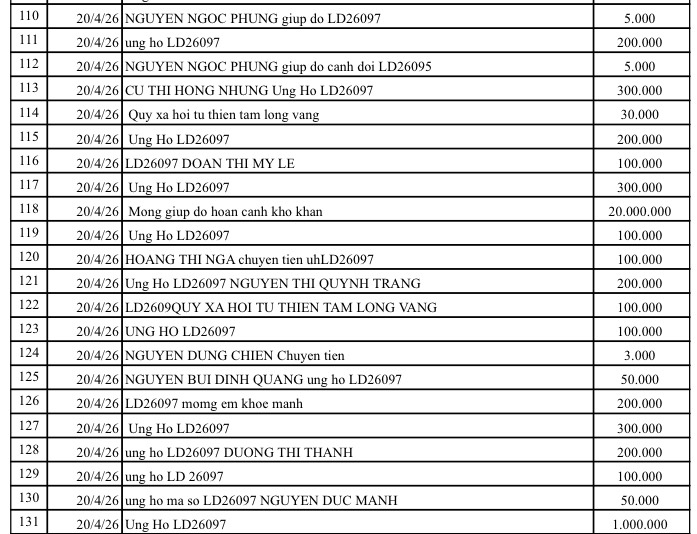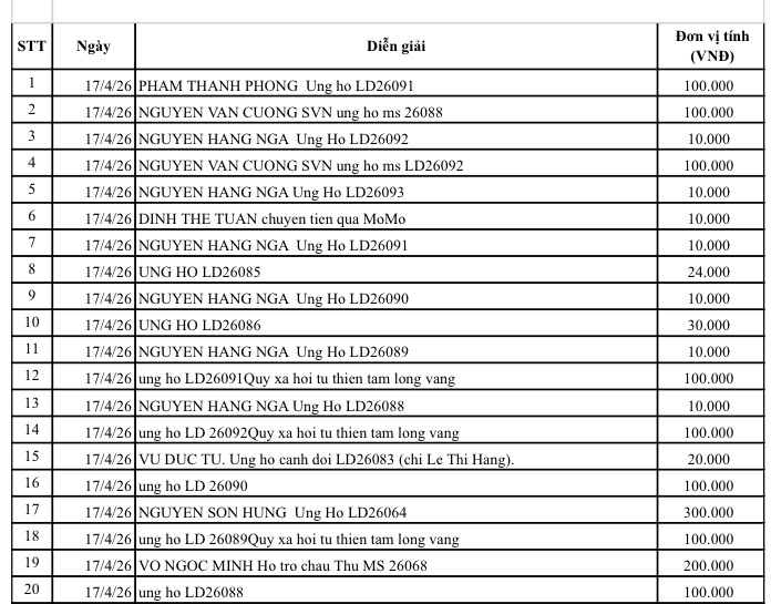 All help please send to: Tam Long Vang Charity Fund, No. 51 Hang Bo, Hoan Kiem, Hanoi. Phone: 024. 39232756. Account number (STK): 113000000758 at Vietinbank Hoan Kiem Branch, Hanoi. Account number: 0021000303088 - at Vietcombank - Hanoi Branch, Account number: 12410001122556 - at BIDV - Hoan Kiem Branch.