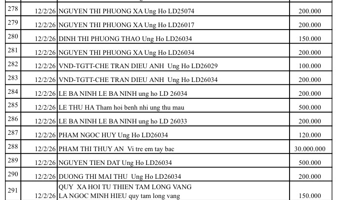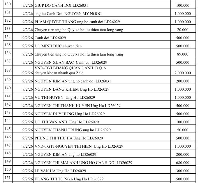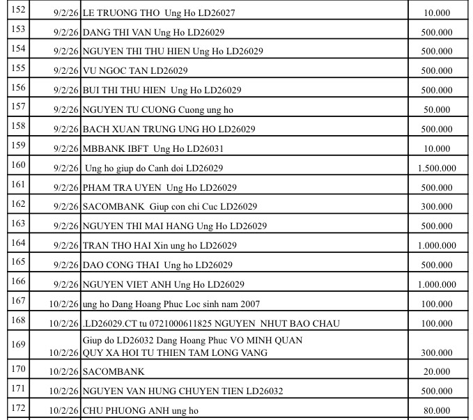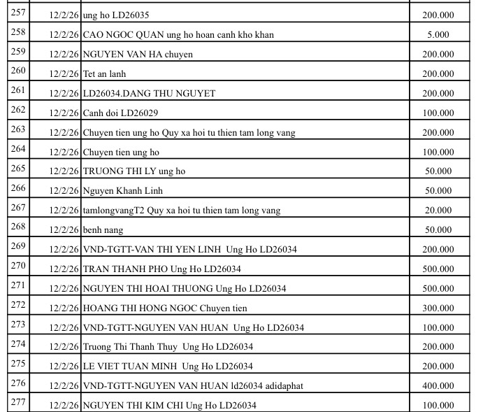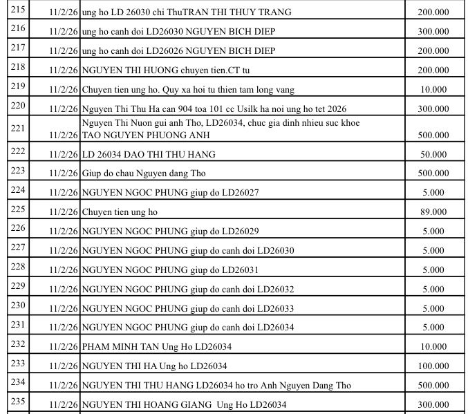 All help please send to: Tam Long Vang Charity Fund, No. 51 Hang Bo, Hoan Kiem, Hanoi. Phone: 024. 39232756. Account number (STK): 113000000758 at Vietinbank Hoan Kiem Branch, Hanoi. Account number: 0021000303088 - at Vietcombank - Hanoi Branch, Account number: 12410001122556 - at BIDV - Hoan Kiem Branch.