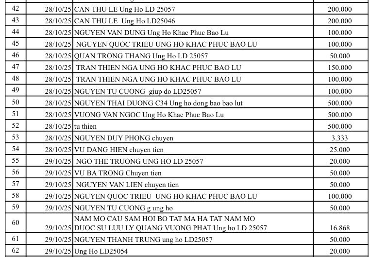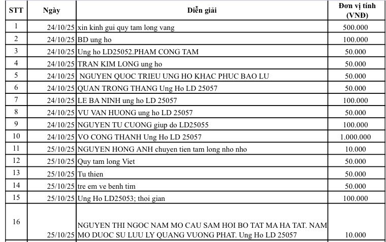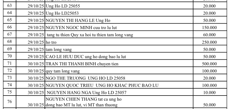 The Golden Heart Social Charity Fund would like to sincerely thank readers for donating and supporting people in flood-affected areas and those in difficult circumstances: