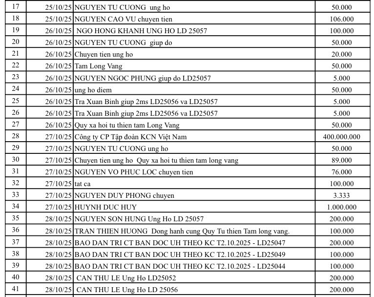 List of readers supporting people in flood-affected areas and difficult circumstances from October 24 to 30