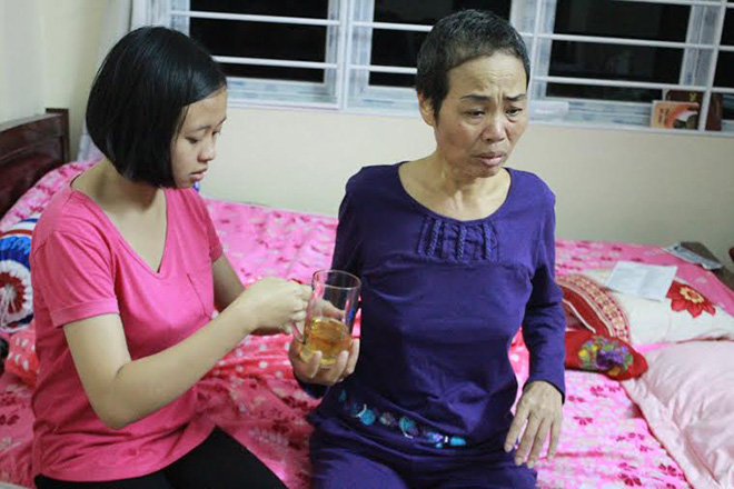 | Vân nghẹn ngào khi nghĩ đến những nỗi đau mẹ đang phải chịu đựng |
