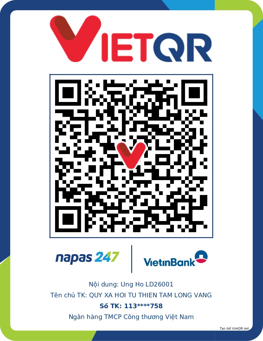 Please send any help to LD26001 to the Golden Heart Charity Fund - 51 Hang Bo, Hoan Kiem District, Hanoi. Account number (STK) 113000000758 at Vietinbank Hoan Kiem Branch, Hanoi; Contact number: 0021000303088 - at Vietcombank Hanoi Branch; Contact number: 12410001122556 - at BIDV Hoan Kiem Branch.