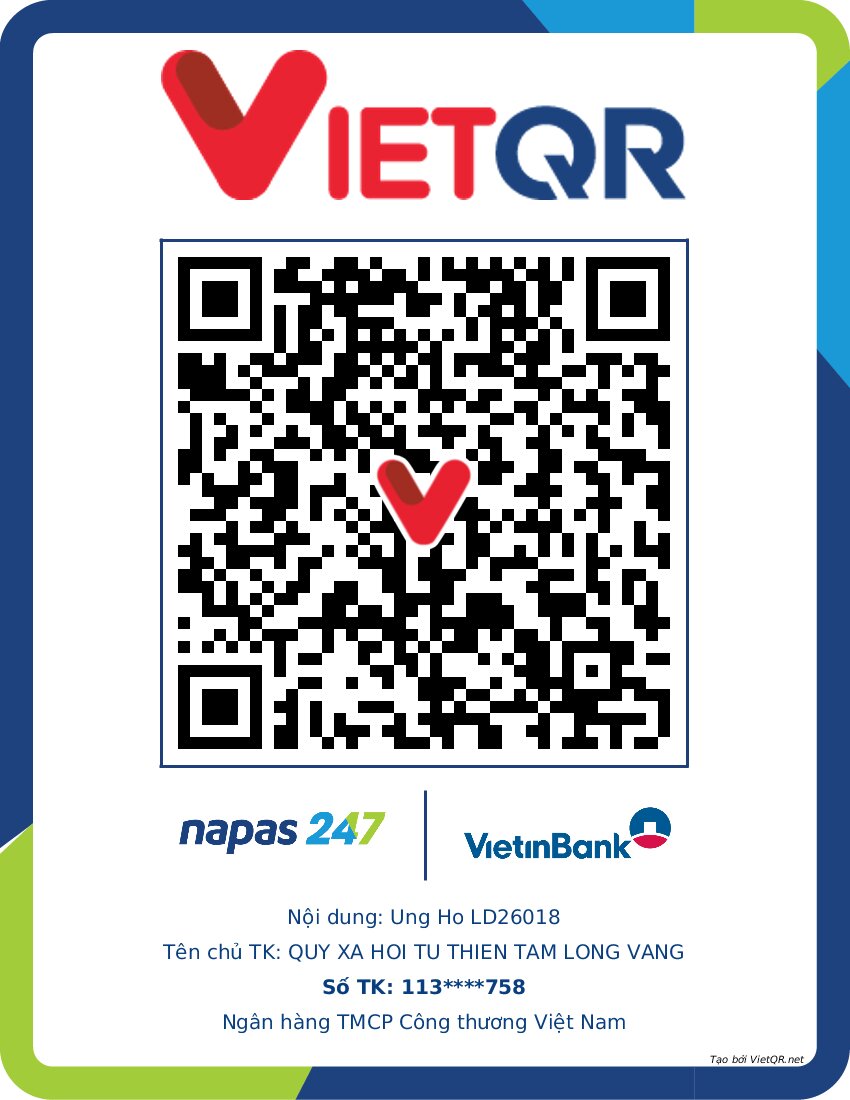 Please send any help to LD26018's life to the Golden Heart Charity Fund - 51 Hang Bo, Hoan Kiem District, Hanoi. Account number (STK) 113000000758 at Vietinbank Hoan Kiem Branch, Hanoi; Contact number: 0021000303088 - at Vietcombank Hanoi Branch; Contact number: 12410001122556 - at BIDV Hoan Kiem Branch.