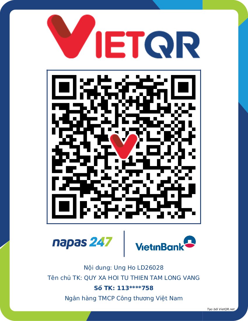 All help. Life situation LD26028 - Ms. Ngo Thi Nguyen, please send to Tam Long Vang Charity Social Fund - 51 Hang Bo, Hoan Kiem District, Hanoi. Account number (STK) 113000000758 at Vietinbank Hoan Kiem Branch, Hanoi; Account number: 0021000303088 - at Vietcombank Hanoi Branch; Account number: 12410001122556 - at BIDV Hoan Kiem Branch.