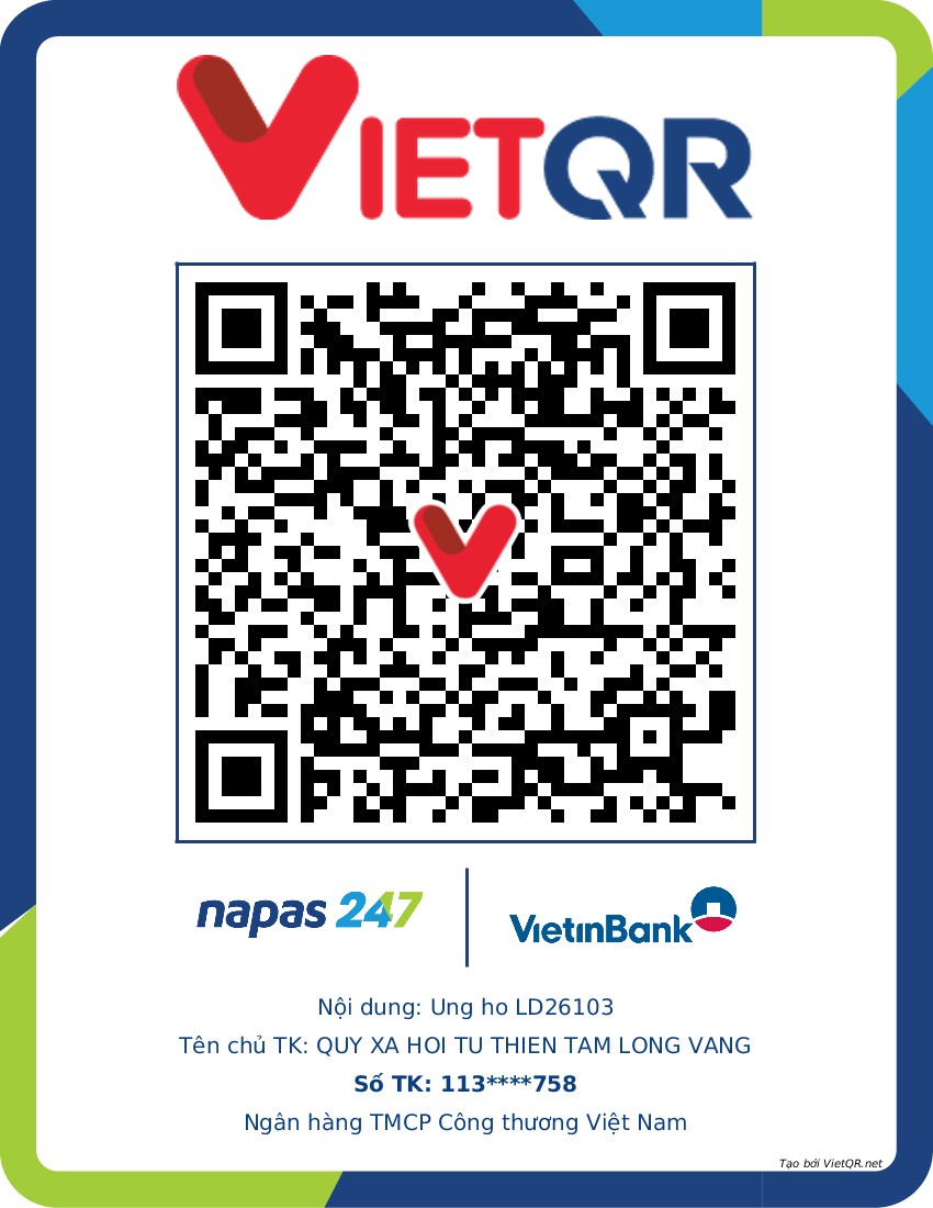 All help for life situation LD26103 please send to Tam Long Vang Charity Social Fund - 51 Hang Bo, Hoan Kiem District, Hanoi. Account number (STK) 113000000758 at Vietinbank Hoan Kiem Branch, Hanoi; Account number: 0021000303088 - at Vietcombank Hanoi Branch; Account number: 12410001122556 - at BIDV Hoan Kiem Branch