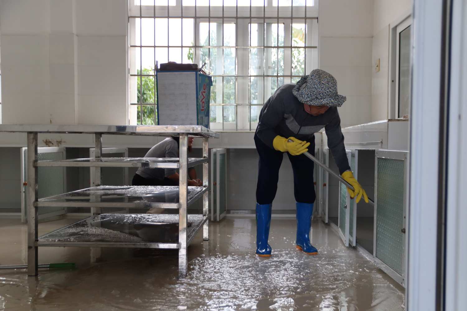 The school's facilities were severely damaged, especially the classrooms on the ground floor. The entire TV system for teaching was soaked with water and completely broken.