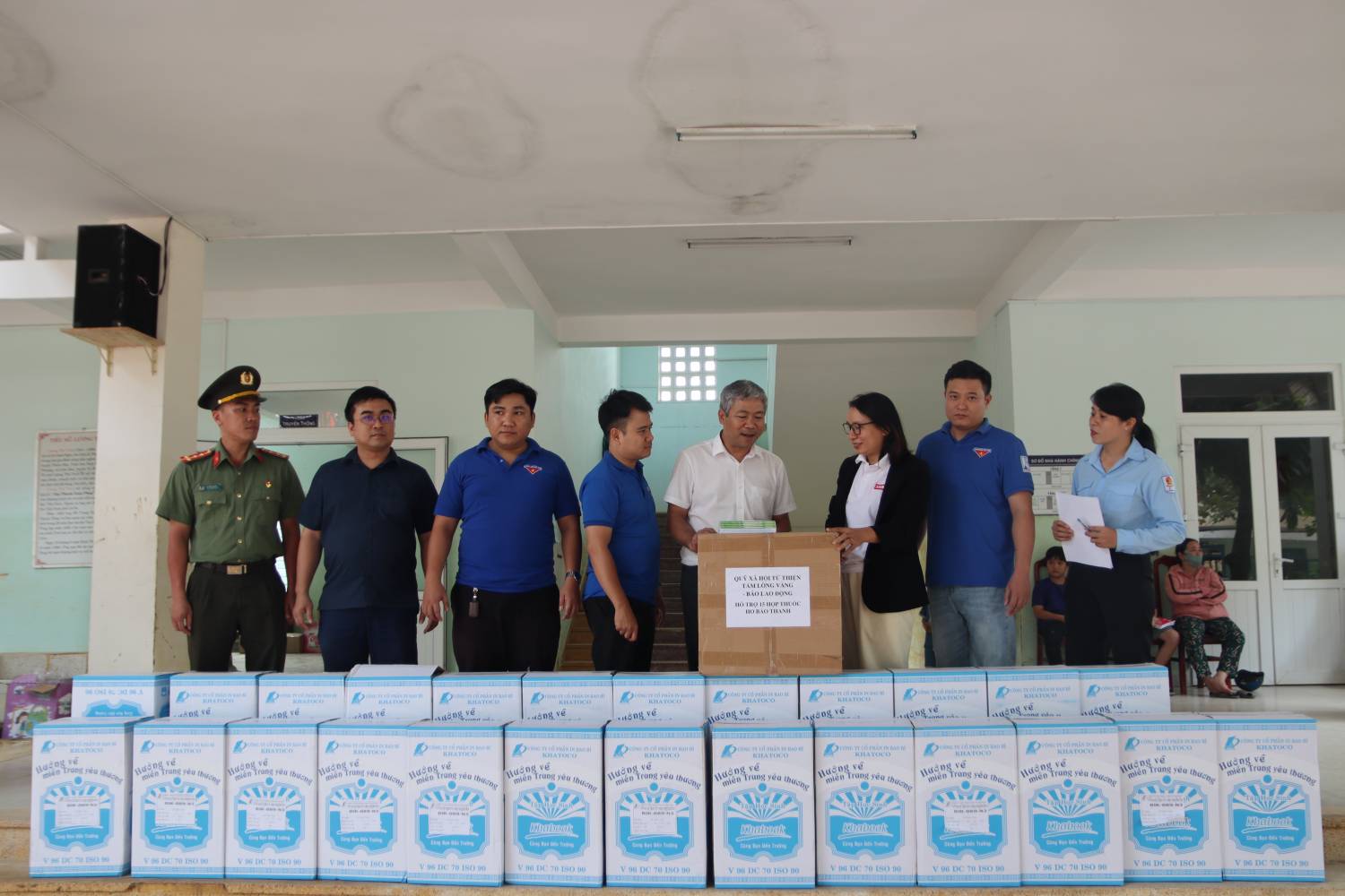 On the afternoon of November 26, the Golden Heart Social Charity Fund in coordination with the Trade Union and the Youth Union of Khanh Viet Corporation presented 30,000 notebooks to students at schools heavily affected by the recent flood.