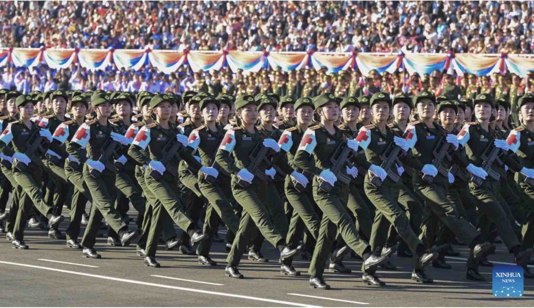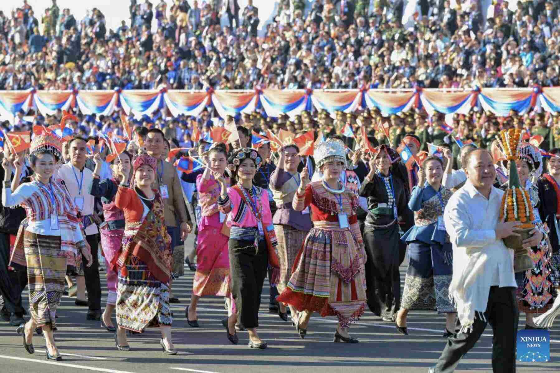 This is a large parade, marking the 50th anniversary of the brilliant and glorious history of the Lao ethnic people.