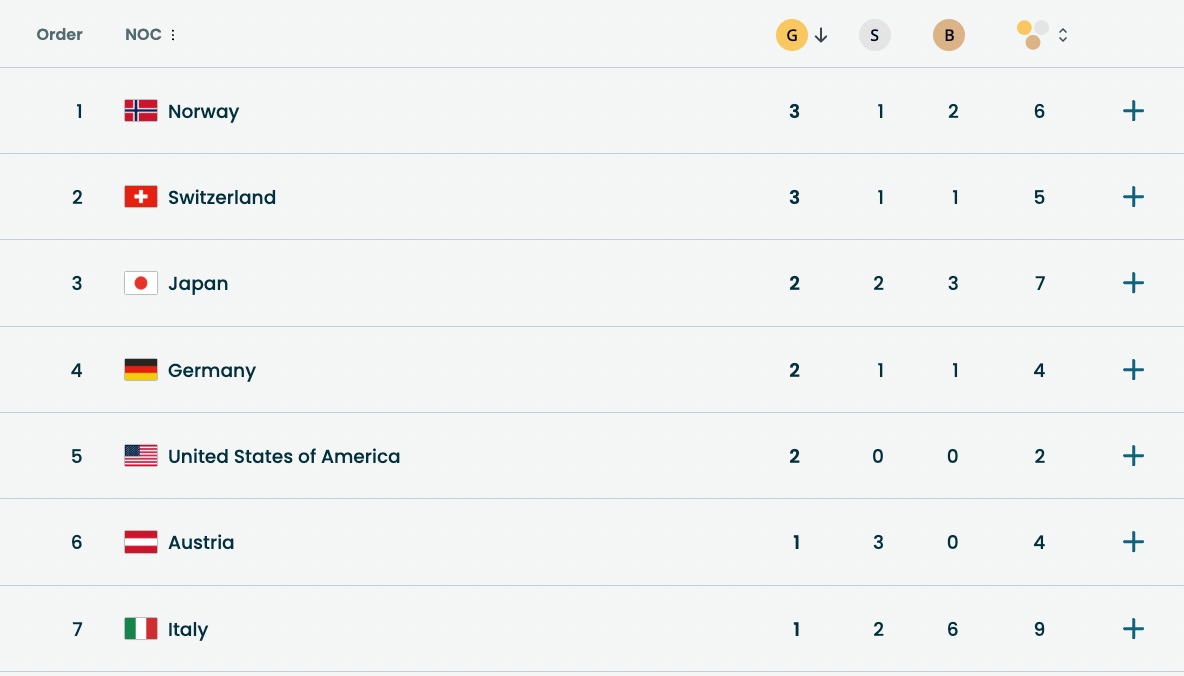 After more than 4 days of competition, Norway is currently leading the medal standings at the 2026 Winter Olympics with 3 gold medals, 1 silver medal and 2 bronze medals.