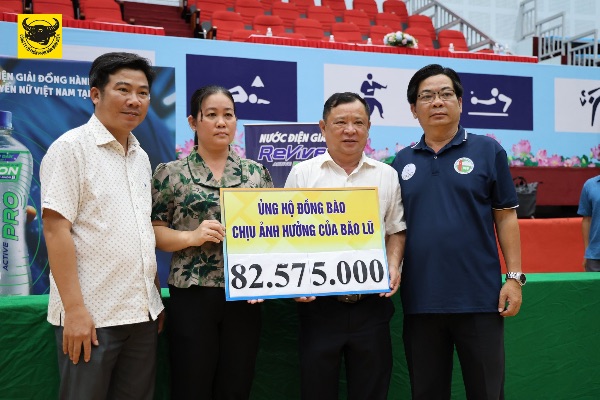 "The organizing committee has donated more than 82 million VND to the Vietnam Fatherland Front Committee of Vinh Long province, to support people in the Central and Central Highlands provinces affected by storms and floods. This amount of money was donated from units, organizations, individuals and audiences present at the stadium - a beautiful testament to the spirit of sportsmanship for people", the VTV Binh Dien Long An club homepage has just announced.
