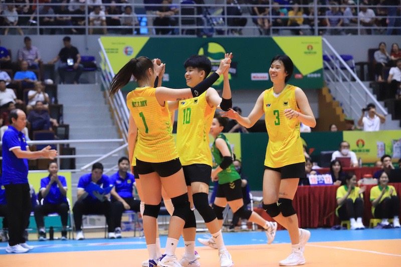 defending champion VTV Binh Dien Long An easily won 3-0 against Thai Binh in the opening match of the 2025 National Volleyball Championship. Thanh Thuy and Tra My's soldiers are still showing their impressive and stable performance.