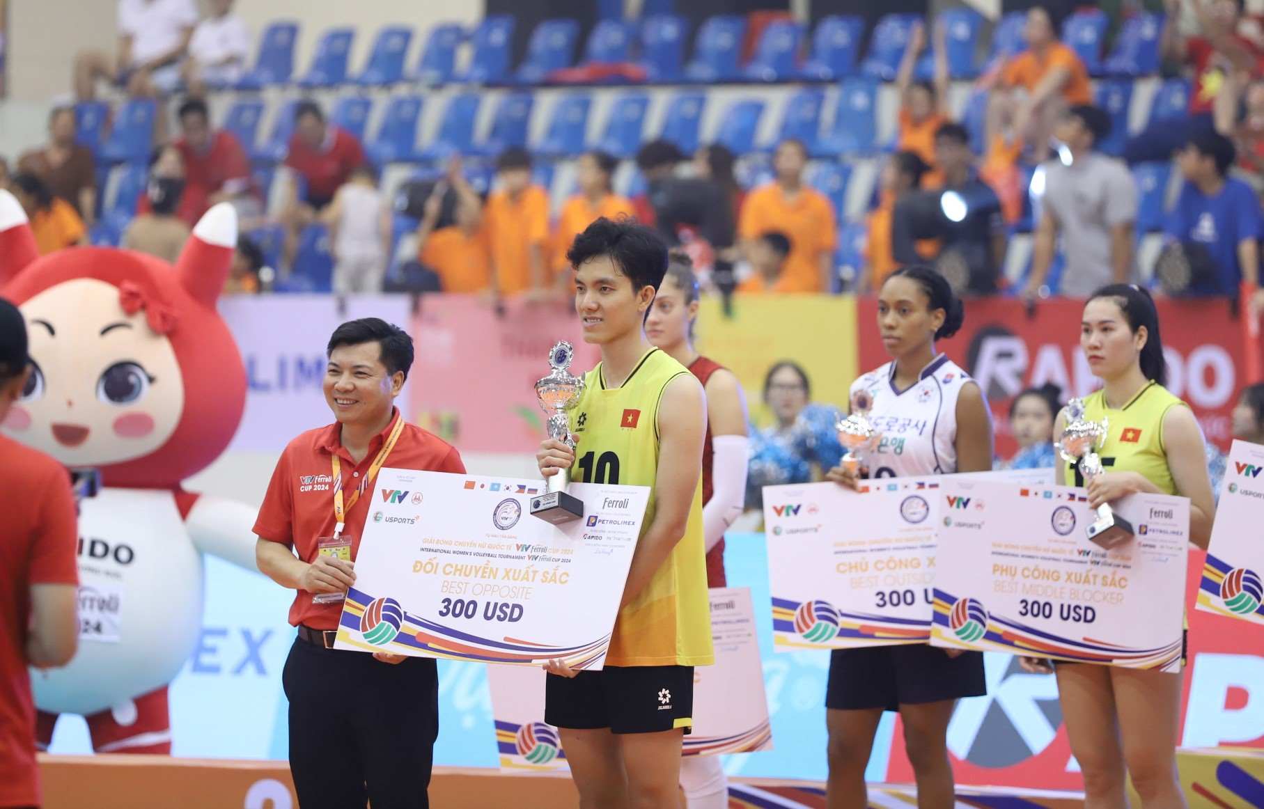 Closing the VTV Cup 2024 International Women's Volleyball Tournament, Bich Tuyen won the runner-up position with the Vietnamese women's volleyball team and the title of Best Opposing Player.