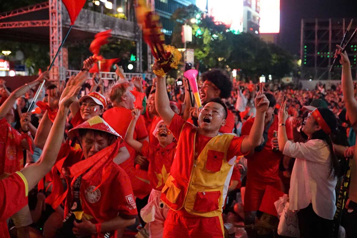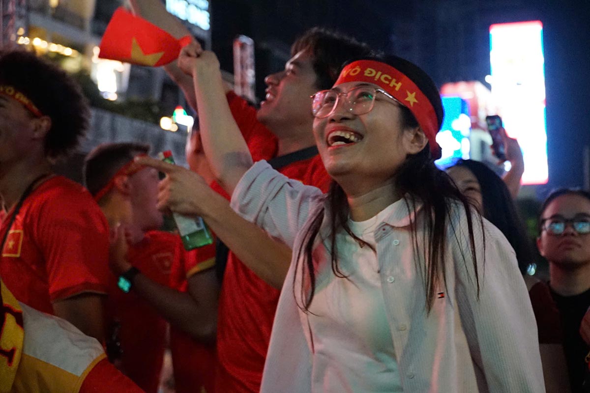 In the first half, U23 Vietnam scored the opening goal 1-0, the entire pedestrian street area burst into tears. Thousands of fans simultaneously cheered, applauded, and many people hugged each other in indescribable joy.