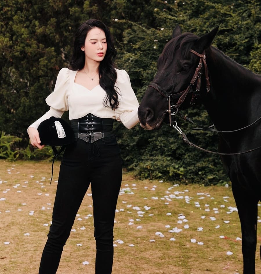 Binh Ngo Year 2026! Good luck," shared Le Thanh Thuy when posting her new photo set on her personal Facebook page. In this New Year's photo set, Thanh Thuy transformed into a real female horse racer.