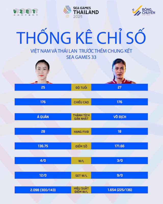 The difference is clearly reflected through statistics. In the series of final matches, Vietnam only won 3 sets, while Thailand dominated with 36 sets. At the 32nd SEA Games, the Vietnam women's team continued to lose to a familiar opponent with a score of 1-3, despite creating a tense match at times.
