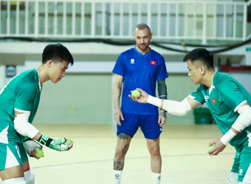 Immediately after the working session, the Vietnamese futsal team entered tactical training. Coach Diego Giustozzi spent most of his time completing plans for the match against Kuwait, directly directing in detail about the organization of the playing style, movement and coordination between positions, to ensure tightness in defense and efficiency in attack, ready for the opening match at the 2026 Asian Futsal Championship finals.
