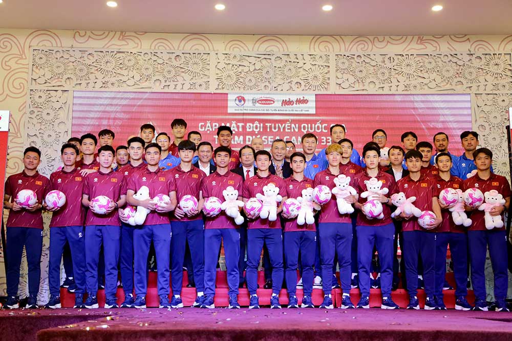 At the meeting with national teams to prepare for the 33rd SEA Games, Acecook Vietnam Joint Stock Company and Hao Hao brand announced to continue accompanying Vietnamese football until 2030 with the Top Star Partner sponsorship package. At the same time, this enterprise awarded 500 million VND to encourage the competitive spirit of the U22 team and the national women's team before the journey to conquer the regional arena.