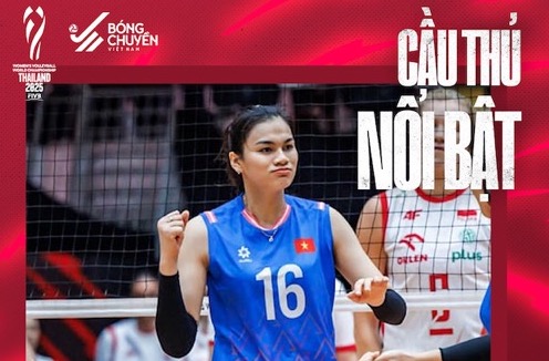 Striker Vi Thi Nhu Quynh is the most outstanding player of the Vietnam women's volleyball team in the opening match of the 2025 World Championship.